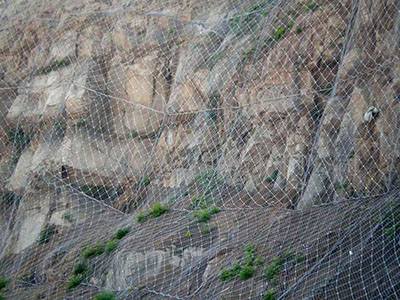 SNS柔性邊坡防護網,佚名邊坡防護網、柔性防護網、鋼絲繩防護網,可以簡單的分為主動防護網、被動防護網和環形防護網等幾個系統。 主要特點: 具有高柔性,高防護強度,易鋪展性。適應任何坡面地形,安裝程序標準化、系統化。 系統采用模切化安裝方式,工期短,施工費用低。 系統材料的特殊制造工藝和高防腐防銹技術,決定了系統的超高壽命。系統能將工程隊環境的影響降到最低點,其防護區域可以充分的保護土體、巖石的穩固,便于人工綠化,有利于環保。 結構配置: 鋼絲繩網、鋼絲繩錨桿、支撐繩、縫合繩、鋼絲格柵網。