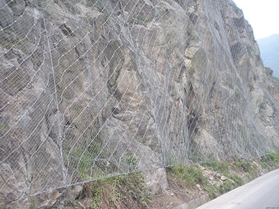 產品名稱:SNS主動邊坡防護網 材料:采用8的鋼絲繩(抗拉強度為1770Mpa,破斷拉力>40KN)編制并在結點處用專用“十字扣”固定而成,為防護網的主要特征構件之一,在主動防護中通過鋼絲繩網的覆蓋來實現邊坡的加固,其開放特征可以實現對坡面天然植被和植被生長條件的最佳保護,實現環境保護與災害治理的有機結合;在被動防護系統中,其柔性特征充分體現了“以柔克剛”的思想,實現崩塌落石的有效攔截。 產品特性: 雙層防腐(熱鍍鋅、裹塑),產品防腐壽命大幅提升。 生態、環保,產品采用不同的顏色使之與環境顏色融為一體,達到更加生態和環保的目的。